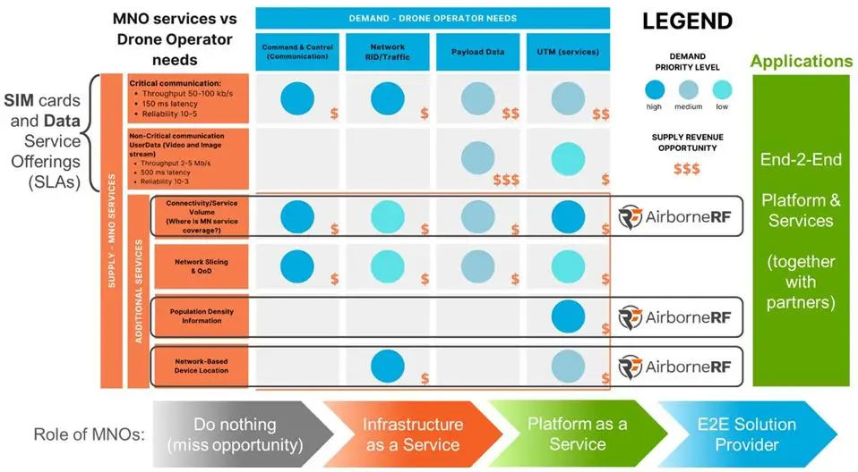 AirborneRF is a leading-edge airspace connectivity solution that bridges the gap between telecommunications and aviation. It is an industry-first platform for businesses looking to unlock new revenue streams and enhance aerial operations.