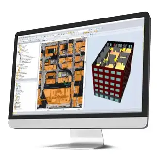 Detailed modelling of buildings, floors, and structural components: walls, horizontal and inclined surfaces, openings, pillars, etc.