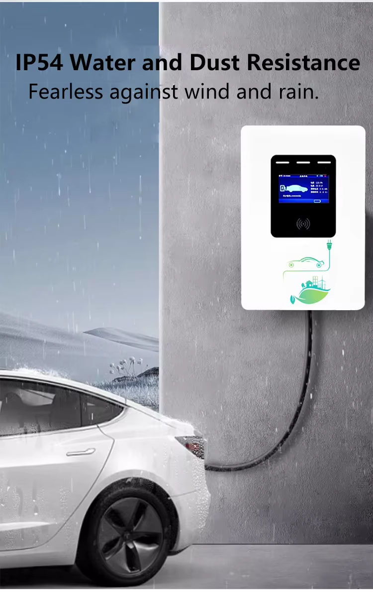 The charger includes smart communication options, multiple charging modes, and secure payment integration options such as RFID, mobile app, and QR code systems. Its durable design and protection systems ensure safe operation under various electrical conditions.
